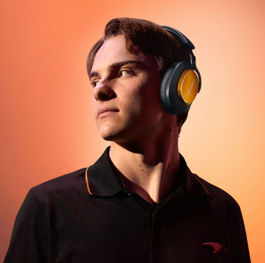 本モデルは、McLarenのデザイン哲学から着想を得た外観を採用。主要部分にはアンスラサイトグレーのナッパレザーを使用し、メタリックなパパイヤカラーが施されたイヤーカップが洗練されたアクセントとして存在感を放つ。また、ヘッドバンドにはMcLarenのエンボスロゴが配置され、特別モデルとしての価値をさらに高めている。