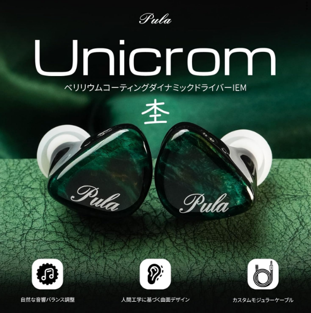 今回のレビューはPULAの新作Unicrom 杢だ。前作のAnvil114は骨伝導ドライバーを採用しており、とても楽しいイヤホンだったが、久しぶりの新作で楽しみにしていた。