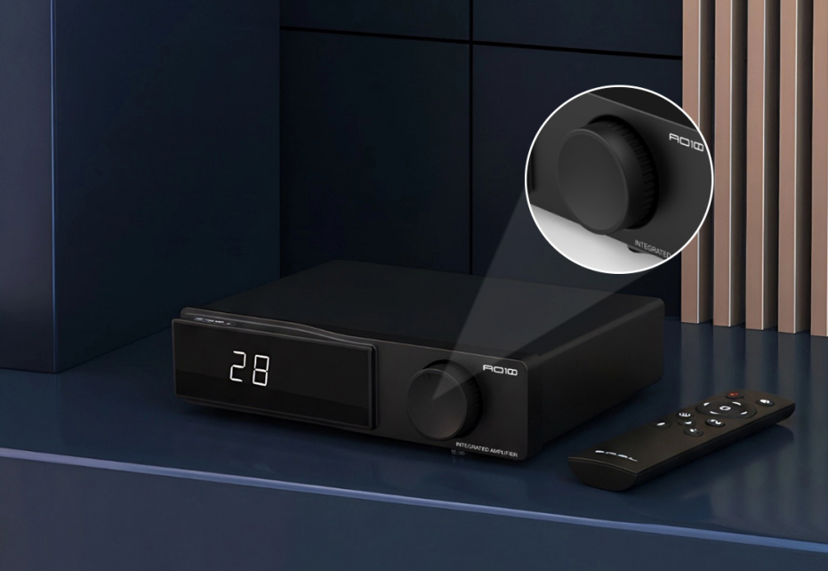AO10は、Texas Instruments製のクラスDアンプチップ「TPA3116」を搭載。最大100W×2(2Ω)、70W×2(4Ω)の出力に対応し、小型筐体ながら十分な駆動力を確保している。ピュアな音質と高効率を両立した設計が特徴だ。